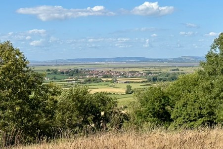 Looking out at Combwich from Cannington Camp with the mouth of the River Parrett and Brent Knoll in the Background